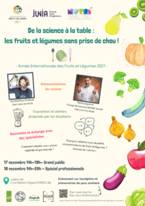 Année internationale des Fruits et Légumes 15/11/2021 Béatrice de Reynal 936 visites Décrétée par l’OMS, l’année internationale 2021 nous a incités à organiser ces deux journées à Lille, une pour le grand public, l’autre pour les professionnels. JEUDI prochain : pour les pro MERCREDI prochain pour le grand public Venez nous rejoindre : vous saurez qu’utiliser plus de fruits et légumes dans vos recettes permet d’améliorer la santé et le bien-être des mangeurs, mais aussi, que les Nutri-Score sont naturellement améliorés, que le prix de revient est le plus souvent moindre, et tout ceci sans altérer la DDM, ni le goût, ni le coût… Tout bénéf pour la planète et vous pourrez le dire. Conférence et ateliers organisés. Inscription gratuite mais obligatoire https://www.isa-lille.fr/blog/evenements/les-fruits-et-legumes-a-honneur/ Partagez l’information https://www.linkedin.com/feed/update/urn:li:activity:6863763810969243648 Share Post Share