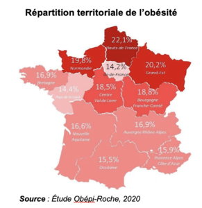Surpoids et Obésité : où en est-on en France ? 09/03/2023 Alix de Reynal 989 visites Une nouvelle enquête a été menée du 24 septembre au 5 octobre 2020 par Odoxa auprès d’un échantillon de Français âgés de 18 ans ou plus. Les participants (n = 9598) ont auto-mesuré leur taille et leur poids selon des instructions détaillées. La méthodologie retenue a été choisie la plus proche possible des précédentes enquêtes (études Obepi-Roche). La prévalence du surpoids était de 47,3 % (17,0 % des sujets obèses), avec des valeurs plus élevées dans le nord et l’est de la France. Il apparaît que le surpoids fluctue autour de 30 % et que la prévalence de l’obésité augmente régulièrement à un rythme rapide. L’augmentation est plus forte dans les tranches d’âge les plus jeunes et pour l’obésité sévère et complexe. Compte tenu des méthodologies légèrement différentes entre les études 1997-2012 et l’enquête 2020, les tendances inquiétantes de la prévalence de l’obésité depuis 1997 doivent être confirmées, appelant à une réédition de la série Obepi-Roche. Cette enquête a le défaut d’évaluer l’IMC des sujets par questionnaires du poids et de la taille des participants. Mais nous savons que les sujets se déclarent souvent plus grands qu’ils ne sont en réalité (2 à 3 cm). Ils minimisent également leur poids de 2 ou 3 kg. Il aurait été intéressant de pouvoir mesurer précisément la taille et le poids, ce qui rend l’étude, bien sûr, plus longue et couteuse, mais Ô combien plus précise ! Prevalence of Overweight and Obesity in France: The 2020 Obepi-Roche Study by the “Ligue Contre l’Obésité” – Annick Fontbonne, Andrew Currie, Patrick Tounian, Marie-Christine Picot, Olivier Foulatier, Marius Nedelcu, David Nocca – Journal of Clinical Medicine Année : 2023 Share Post Share